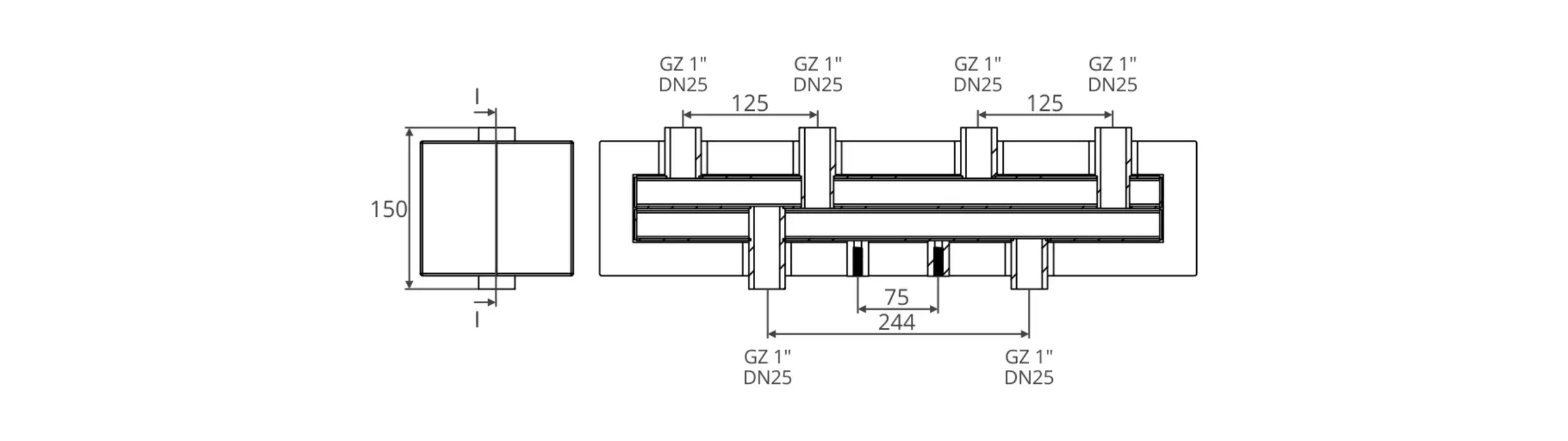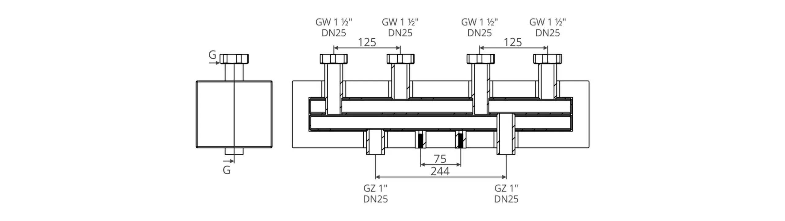 Central heating distributor – 2 circuits is a key element of the central heating system, enabling effective management of the heating medium flow in two independent circuits. Its task is to evenly distribute heat and optimize the operation of the entire heating system. It ensures the stability of pump operation, limits pressure drops and improves the energy efficiency of the installation. The distributor is made of high-quality materials, which guarantees durability, corrosion resistance and long service life.