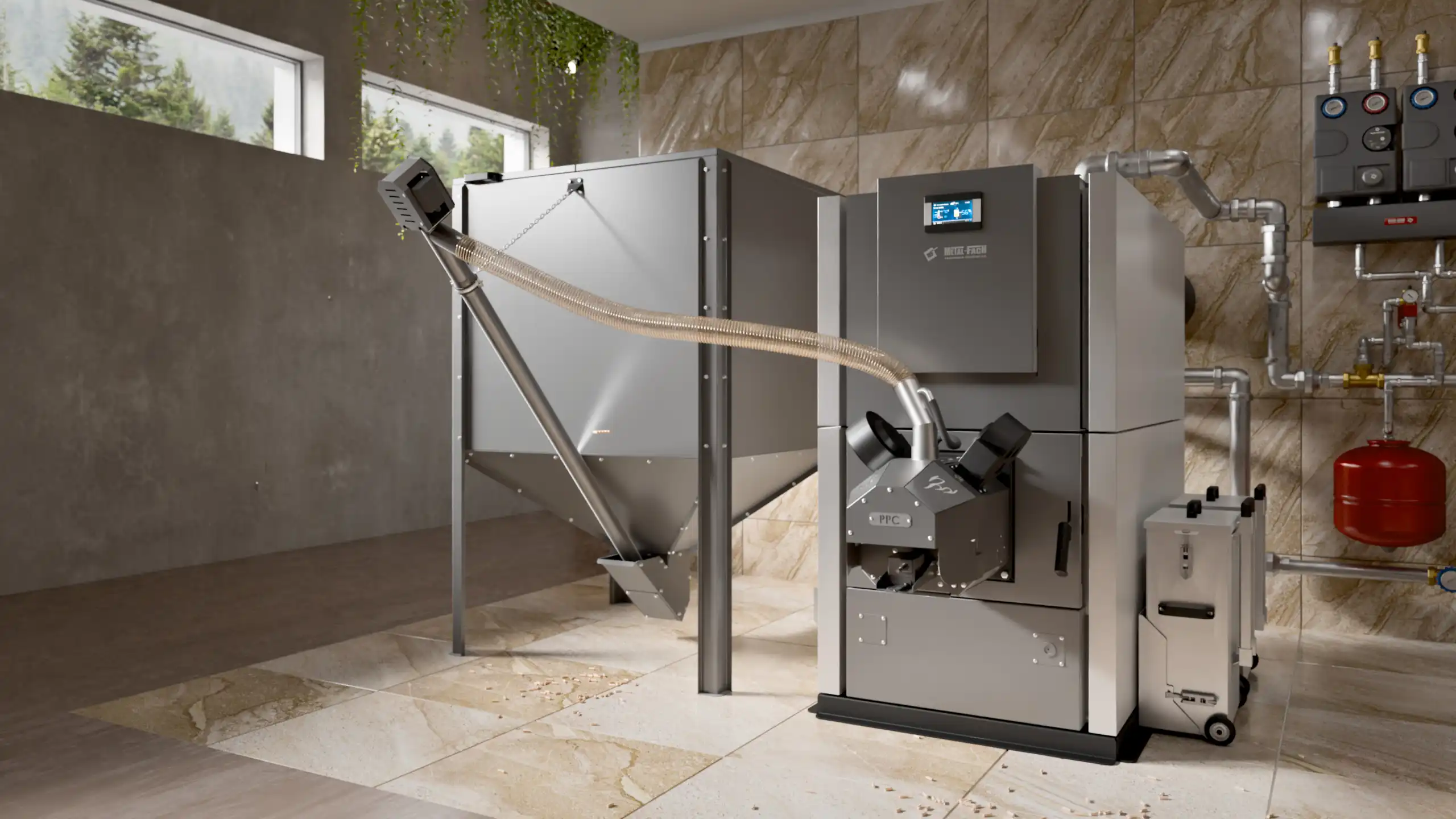 - Maintenance-free fuel supply - pellets are automatically transported from the tank to the burner, eliminating the need for manual feeding.