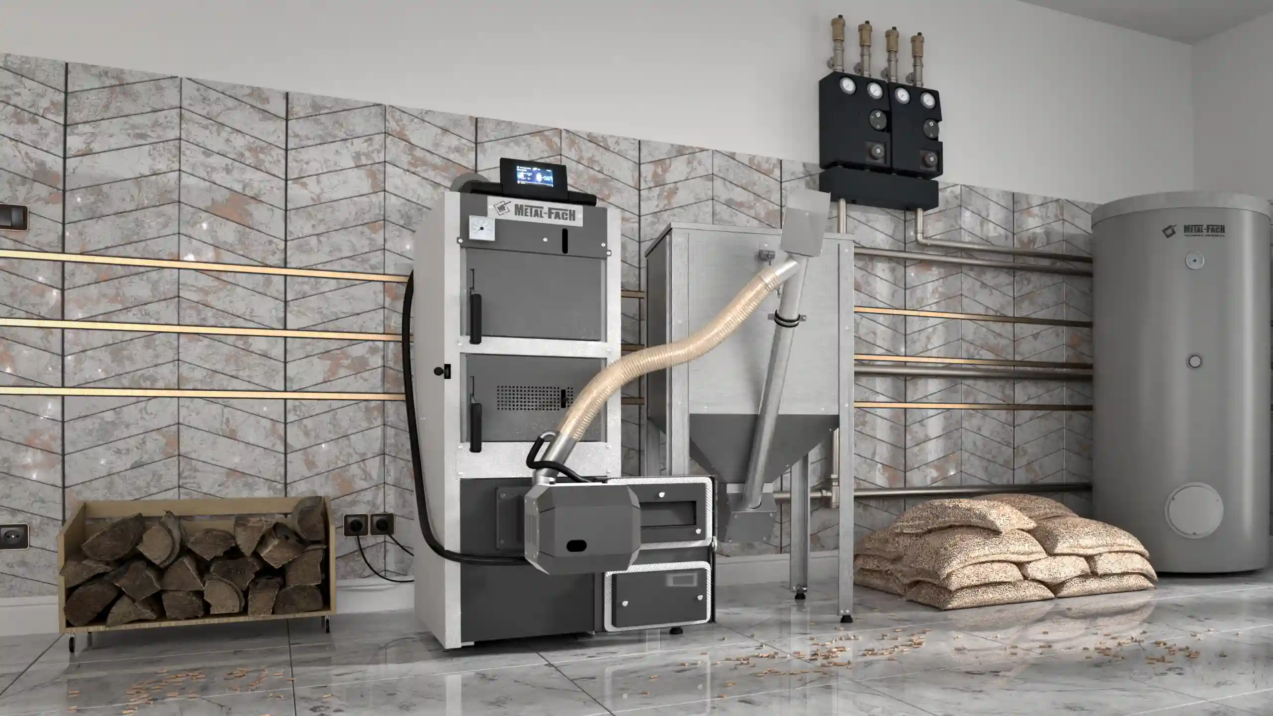 Thanks to intelligent technical solutions, the boiler ensures comfortable operation both during pellet and wood combustion. Automation of processes, such as pellet fuel feeding or automatic burner cleaning, means that daily operation of the device requires minimal involvement. In the case of wood combustion, the gasification chamber allows for high efficiency with relatively easy and quick lighting. As a result, the user has a convenient, safe and effective source of heat at their disposal in every situation.