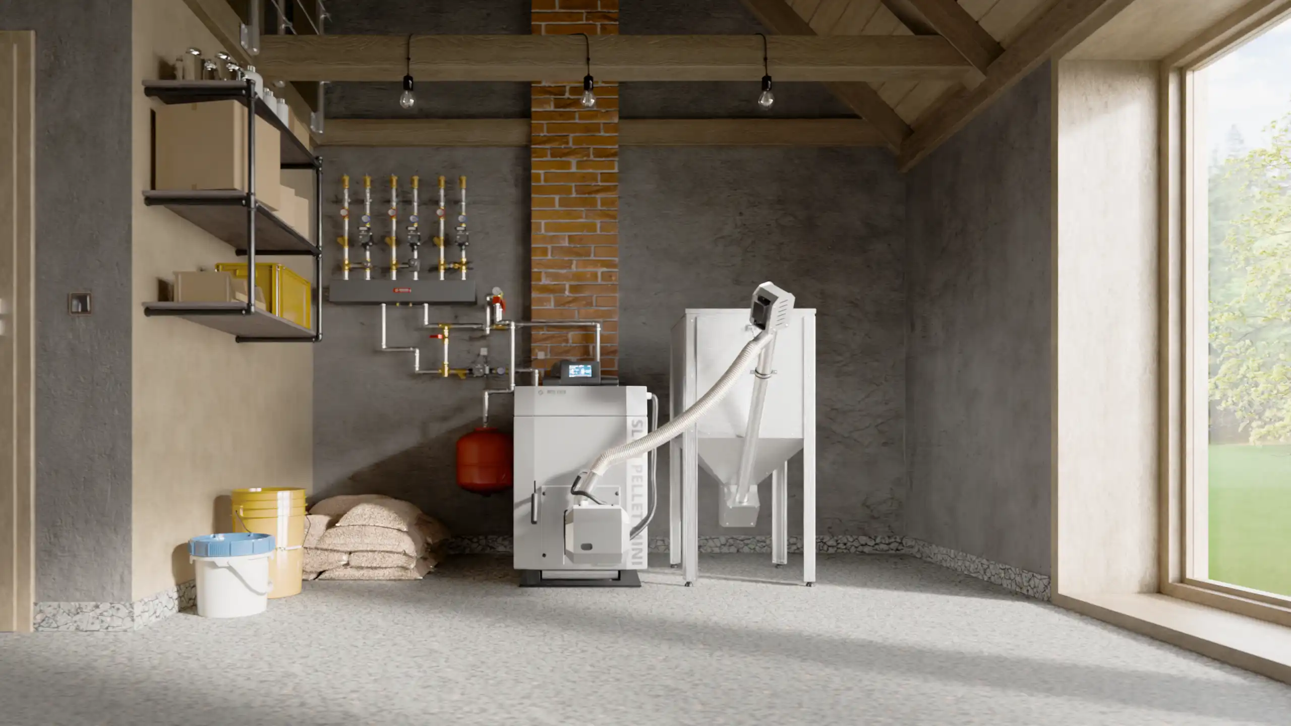 - Maintenance-free fuel supply - pellets are automatically transported from the tank to the burner, eliminating the need for manual feeding.