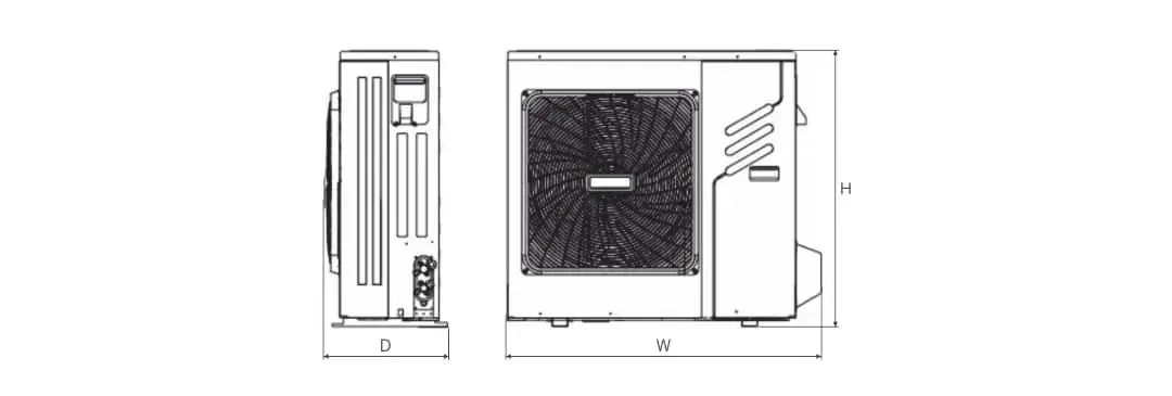 Więcej wymiarów znajdziesz w instrukcji pompy ciepła DTR.