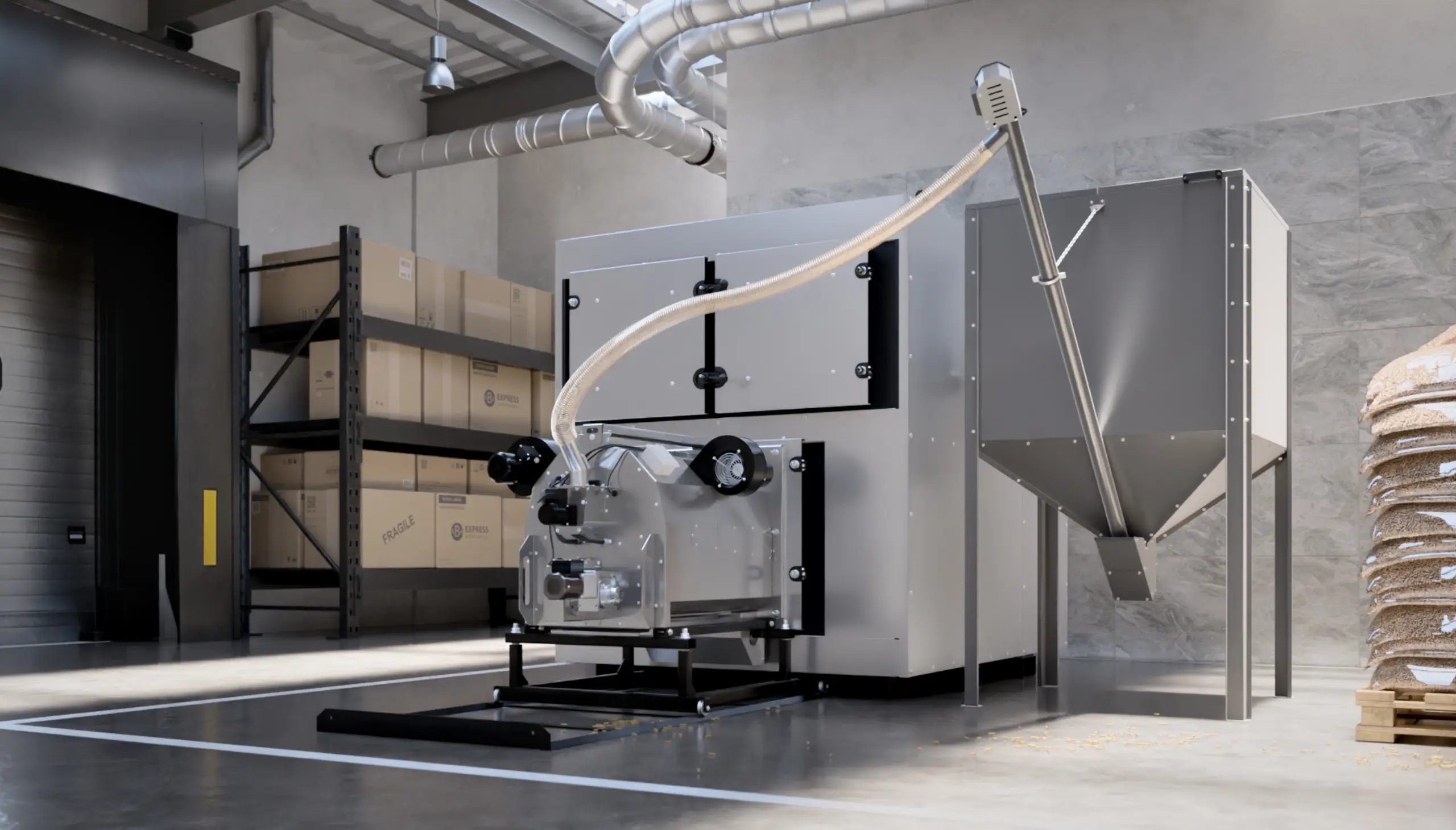 - Bezobsługowe dostarczanie paliwa - pellet jest automatycznie transportowany z zasobnika do palnika, eliminując potrzebę ręcznego podawania.